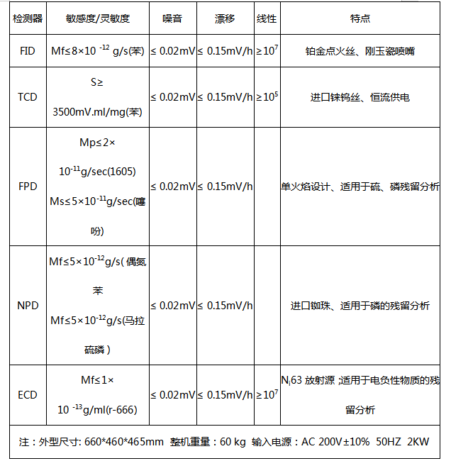 检测器技术指标: